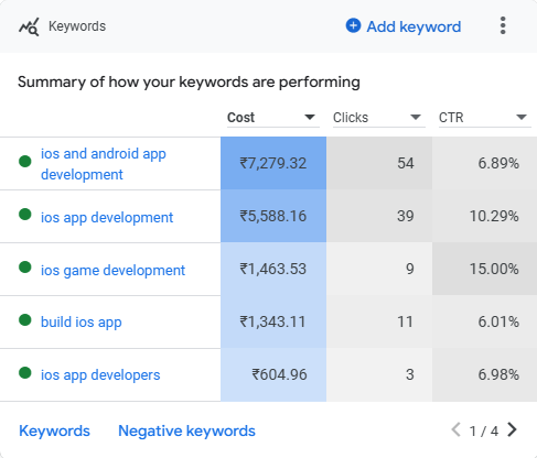 - The most expensive keyword was “ios and android app development”, which also drove the most clicks (54).