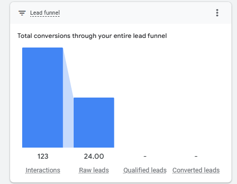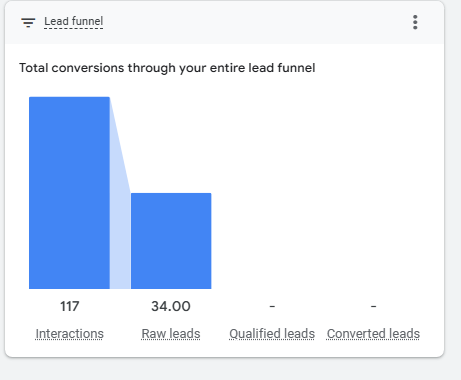 Despite a decent raw lead volume, no leads progressed to a qualified or converted stage, which highlights a gap in lead nurturing and follow-up.